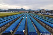 [ 한국미디어뉴스 이원영 기자 ] 양파 아주심기(정식) 작업의 기계화율을 높이려면, 이에 맞는 모종 생산이 중요하다. 농촌진흥청은 양파 육묘 방식 선택폭을 넓히기 위해 10월 21일 경남 함양에서 노지 육묘 현장 설명회를 열었다. 그간 농촌진흥청은 기계화에 알맞은 양파 플러그묘 생산 기술을 확립하고자 내재해형 육묘 온실 모형(모델)을 개발, 보급해 왔다. 더불어 시설 신축에 부담을 느끼는 농가를 위해 노지 육묘 기술 현장 실증을 병행했다. 이번 평가회는 토양 전염병과 강풍, 강우, 습기 피해로 인한 모종 손실 등 양파 플러그묘를 노지에서 생산할 때 발생할 수 있는 문제 해결에 초점을 맞춰 진행했다. 연구진은 함양군 양파 플러그묘 생산 실증 재배지에 토양 전염병 예방 소독 방법과 균일한 모종 생산을 위한 모종판 올리는 방법(완충재· 진압기 활용), 강풍에 안전한 피복재를 적용하고, 육묘상 두둑은 폭 1m, 높이 25~30㎝로 조성했다. 그 결과, 현재까지 강우 등 기상과 병해충에 의한 모종 손실이 없음을 확인했다. 이곳 노지 육묘에 든 비용은 토양 소독, 관수 장치, 피복 자재, 정지기