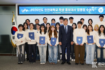 [ 한국미디어뉴스 이원영 기자 ] 인천대학교(총장 이인재)는 4월 13일 ‘2026년도 학생 홍보대사 임명장 수여식’을 개최하고 제26기 학생 홍보대사 21명을 공식 임명했다. 이날 행사에는 총장을 비롯한 주요 보직자와 홍보대사들이 참석한 가운데, 임명장 수여, 대표 선서, 총장 격려 말씀, 기념 촬영 순으로 진행됐다. 이번에 선발된 제26기 학생 홍보대사는 2026년 3월부터 2027년 2월까지 1년간 활동할 예정으로 캠퍼스 투어, 입시박람회, 대학 공식 행사 지원 등 현장 홍보와 함께 유튜브·인스타그램 등 SNS 콘텐츠 제작에 참여한다. 특히, 최근에는 밈을 활용하여 수강 신청을 재미있게 안내하거나 가을 캠퍼스를 감성적으로 표현하고 AI를 활용하여 SNS 콘텐츠를 제작함으로써 대학생뿐만 아니라 고등학생 등 젊은 층에서 많은 공감과 호응을 받아 왔다. (인천대학교 공식 인스타그램 @inu.korea) 이인재 총장은 “학생 홍보대사는 대학의 가치를 학생의 시선에서 전달하는 중요한 역할을 수행한다”며 “자부심을 가지고 인천대학교의 강점과 매력을 적극적으로 알려주길 바란다”고 말했다. 인천대학교 학생 홍보대사는 지금까지 2002년 1기를 시작으로 25기까지 총