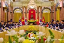 [ 한국미디어뉴스 이원영 기자 ] 베트남을 국빈 방문 중인 이재명 대통령은 22일(현지시간) 오후 베트남 국가주석궁에서 또 럼 당서기장 겸 국가주석과 정상회담을 갖고, 양국 간 포괄적 전략 동반자 관계 발전 방안과 지역·국제 정세 등에 대해 심도 있게 논의했다고 이규연 청와대 홍보소통수석이 서면 브리핑했다. 또 럼 당서기장은 이 대통령의 베트남 방문을 환영하며, 본인이 지난해 한국 정부의 첫 국빈으로 방한한 데 이어, 이 대통령이 베트남의 신지도부 출범 후 베트남의 첫 국빈으로 방문한 것을 뜻깊게 생각한다고 했다. 이 대통령은 또 럼 당서기장의 환대에 사의를 표하고, 서로가 첫 국빈 접수국으로 상대국을 선택한 것은 양국이 얼마나 특별한 관계인지를 잘 보여주고 있다고 했다. 양 정상은 교역·투자를 비롯해 에너지·원전, 인프라, 과학기술, 문화·인적교류 등 미래지향적, 전략적 분야에서 협력을 한 단계 높이자는 데 의견을 같이했다. 이에 이번 정상회담을 계기로 분야별 협력 강화를 위한 총 12건의 협력 문건이 체결됐다. 교역·투자 분야에서 양 정상은 호혜적인 실질 협력을 더욱 강화해 나가기로 했다. 이