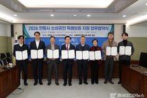 [ 한국미디어뉴스 이보영 기자 ] 안동시는 3월 11일 시청 소통실에서 경북신용보증재단 및 6개 협약은행과 함께 '2026년 안동시 소상공인 특례보증 지원 업무협약'을 체결했다. 이번 협약식에는 권기창 안동시장을 비롯해 경북신용보증재단 이사장과 NH농협은행, 하나은행, 신한은행, KB국민은행, 아이엠뱅크, 우리은행 관계자들이 참석했다. 이번 협약은 고금리․고물가와 소비 위축 등으로 경영에 어려움을 겪고 있는 지역 소상공인의 자금난 해소와 경영안정을 지원하기 위해 마련됐다. 안동시는 사업 추진을 위해 18억 원을 출연하고 협약은행 6곳이 매칭 방식으로 총 18억 원을 출연해 36억 원 규모의 재원을 조성한다. 협약은행별 출연금은 ▲KB국민은행 9억 5천만 원 ▲NH농협은행 3억 원 ▲하나은행 2억 원 ▲신한은행 1억 5천만 원 ▲아이엠뱅크 1억 원 ▲우리은행 1억 원이다. 특히 올해는 안동시 출연금 18억 원에 대해 협약은행이 동일한 규모인 18억 원을 매칭 출연함으로써 특례보증 사업 추진 이래 최초로 은행 매칭 100%를 달성했다. 이를 바탕으로 올해 융자 규모는 전년도 270억 원보