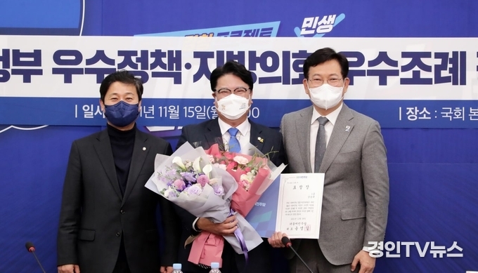 [ 경인TV뉴스 김선근 기자 ] 인천광역시 서구의회의 강남규 의원(자치행정위원회)은 11월 15일 국회 본청 더불어민주당 당대표실에서 개최한 ‘2021년 더불어민주당 지방정부 우수정책·지방의회 우수조례 경진대회 시상식’에서 지방의회 우수조례 분야로 당대표 1급 표창을 받았다고 16일 전했다.