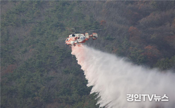 산림당국은 산불진화헬기 3대, 산불진화인력 73명(산불재난특수진화대 30명, 산불공중진화대 8명, 산림공무원 15명, 소방 20명)을 긴급 투입하여 진화작업을 벌이고 있다.