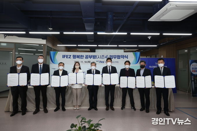 인천경제자유구역청은 18일 송도국제도시 G타워에서 ‘IFEZ 행복한 공부방-시즌4’ 업무협약식을 개최했다고 밝혔다. 이날 협약식에는 이원재 청장을 비롯 시즌4에 참여하는 IFEZ 입주기업, 초록우산어린이재단 관계자 등이 참석했다.