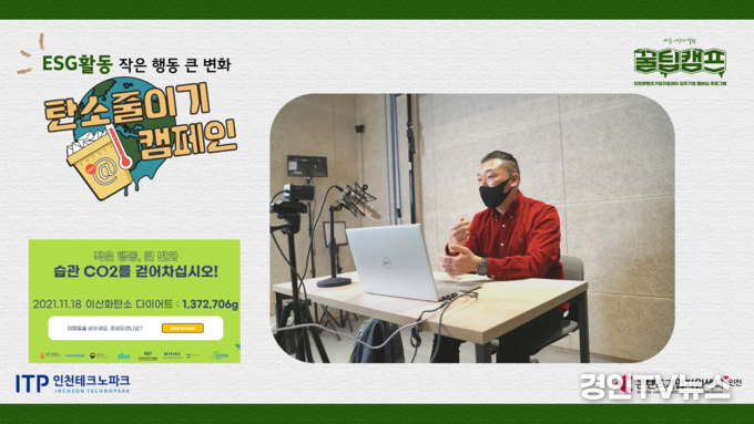[ 경인TV뉴스 김선근 기자 ] 인천테크노파크(인천TP)는 인천콘텐츠기업지원센터 입주기업과 함께 탄소중립 및 기후 행동 실천을 위한 ‘작은 행동, 큰 변화 탄소 줄이기 캠페인’을 벌였다고 22일 밝혔다.