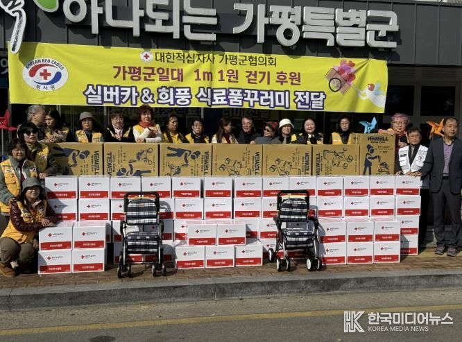 [ 한국미디어뉴스 김서안 기자 ] 대한적십자사 가평군지구협의회는 26일 가평군청에서 후원 물품 전달식을 열고 부식세트 80박스와 실버카 53대를 지원했다. 이날 행사에는 원지연 가평군지구협의회장을 비롯한 20여 명의 봉사자가 참석했다.