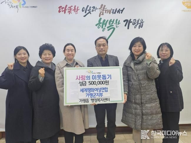 세계평화여성연합 가평군지부는 25일 가평읍 행정복지센터를 방문해 취약계층 지원을 위한 성금 50만 원을 기탁했다.