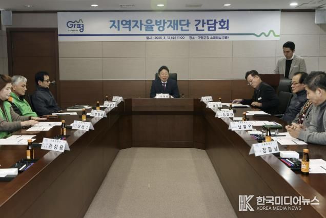 [ 한국미디어뉴스 김서안 기자 ] 가평군은 12일 본청 소회의실에서 군 지역자율방재단과 간담회를 열고 재난 대응 강화를 위한 협력 방안을 논의했다.