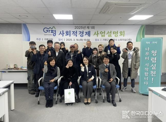 [ 한국미디어뉴스 김서안 기자 ] 가평군이 18일 군청 소회의실에서 사회적경제기업 및 사회적경제에 관심 있는 주민들을 대상으로 ‘가평군 사회적경제 사업설명회’를 개최했다.