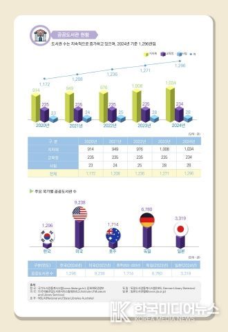 [ 한국미디어뉴스 권경민 기자 ] 문화체육관광부는 한국도서관협회(회장 곽승진)와 함께 ‘2025년 전국 공공도서관 통계조사(2024년 실적 기준)’ 결과를 발표했다.