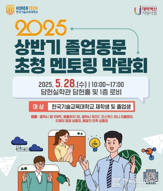 [ 한국미디어뉴스 권경민 기자 ] 고용노동부 한국기술교육대학교(KOREATECH)는 28일 교내 담헌실학관 일대에서 ‘2025 상반기 졸업동문 초청 멘토링 박람회’를 개최한다고 밝혔다.