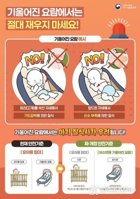 기울어진 요람에서는 아기 질식사가 우려됩니다.