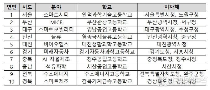 2025년 협약형 특성화고등학교 공모에는 15개 지역 총 37개 연합체가 참여했으며, 산업 및 지역 전문가로 구성된 협약형 특성화고 선정심사위원회의 서면·대면 평가를 거쳐 최종적으로 10개 지역 10개 협약형 특성화고가 선정됐다.
