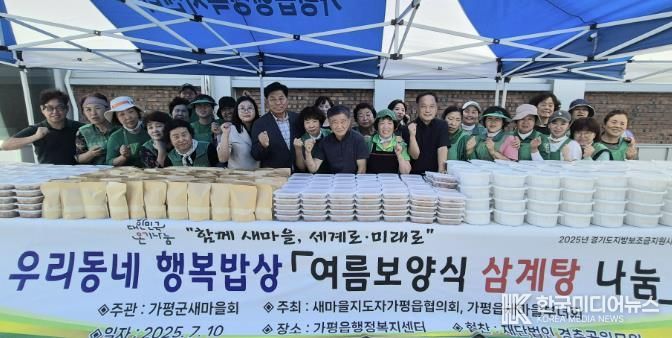 [ 한국미디어뉴스 김서안 기자 ] 가평군 가평읍은 새마을지도자가평읍협의회와 가평읍새마을부녀회가 10일 행정복지센터에서 ‘여름 보양식 삼계탕 나눔’ 행사를 성황리에 진행했다고 밝혔다.