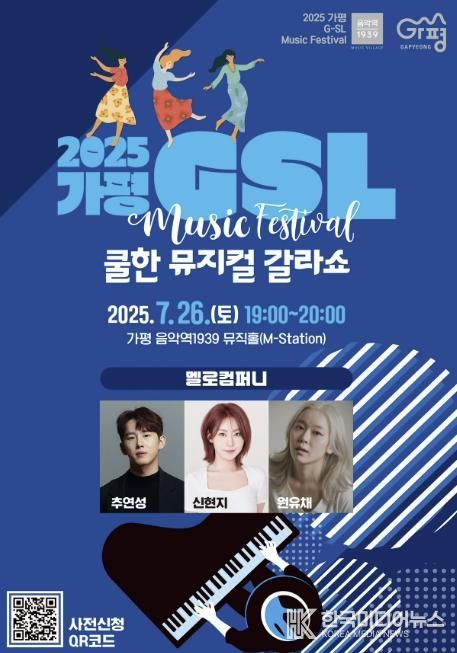 이번 공연은 오는 26일 오후 7시 가평 음악역1939 1층 뮤직홀에서 열리며, 뮤지컬 전문 공연팀 멜로컴퍼니(추연성, 신현지, 원유채)가 출연해 귀에 익은 음악들로 무대를 꾸민다. 감미로운 선율과 풍성한 퍼포먼스가 어우러진 뮤지컬 갈라쇼는 올해 G-SL 네 번째 무대로, 가평의 여름밤을 시원하게 식혀줄 전망이다.