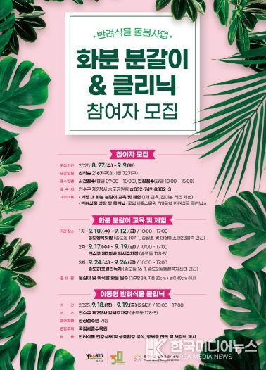 연수구 관계자는 “이번 행사는 전문가로부터 반려 식물 관리 방법을 직접 배우고 실생활에 적용할 기회”라며 “많은 구민의 관심과 참여를 바란다.”라고 말했다.