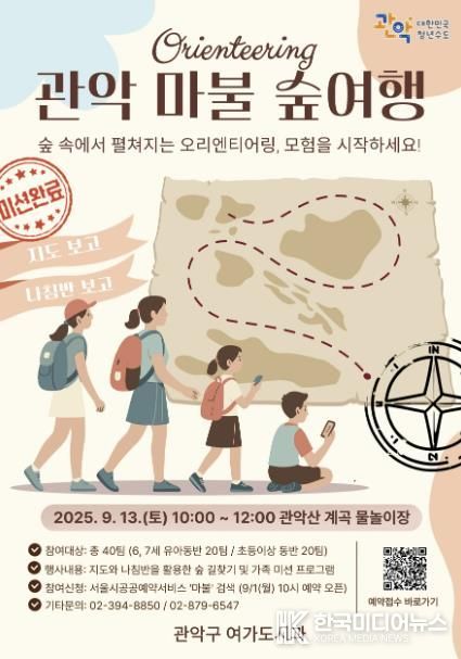 [ 한국미디어뉴스 이보영 기자 ] 관악구(가 유·아동 가족을 대상으로 숲속 모험과 체험을 결합한 특별한 숲티어링 프로그램 '관악 마블 숲여행!'을 프로그램을 운영한다.