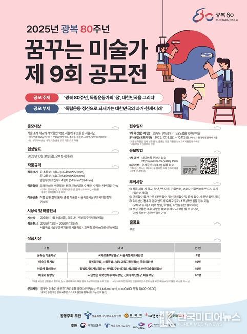 이번 공모전은 ‘광복 80주년, 독립운동가의 꿈, 대한민국을 그리다’를 주제로, ‘독립운동 정신으로 되새기는 대한민국의 과거ˑ현재ˑ미래’라는 부제를 내걸고 추진된다. 이를 통해 전 세대를 아우르는 평생교육의 일환으로 서울시민에게 독립운동 정신 계승과 보훈 교육 강화의 계기를 제공하고자 한다.