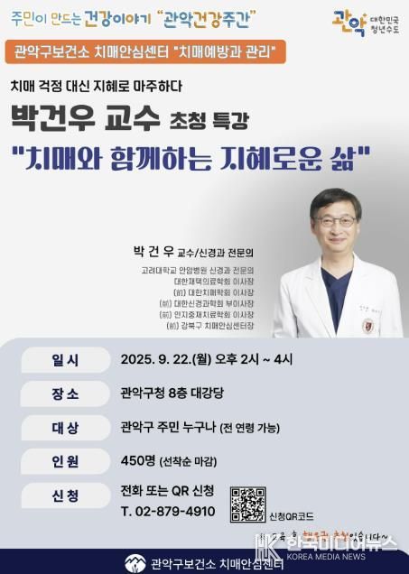 이번 특강은 고려대학교 안암병원 신경과 박건우 교수를 초청해 ‘치매와 함께하는 지혜로운 삶’이라는 주제로 치매의 예방과 관리방법 등을 주민들이 알기 쉽게 강연한다.