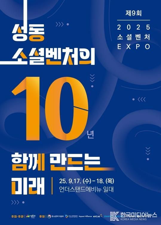 [ 한국미디어뉴스 이보영 기자 ] 서울 성동구는 오는 9월 17일부터 18일까지 이틀간 성수동 언더스탠드에비뉴 일대에서 ‘제9회 소셜벤처 엑스포’를 개최한다고 밝혔다.