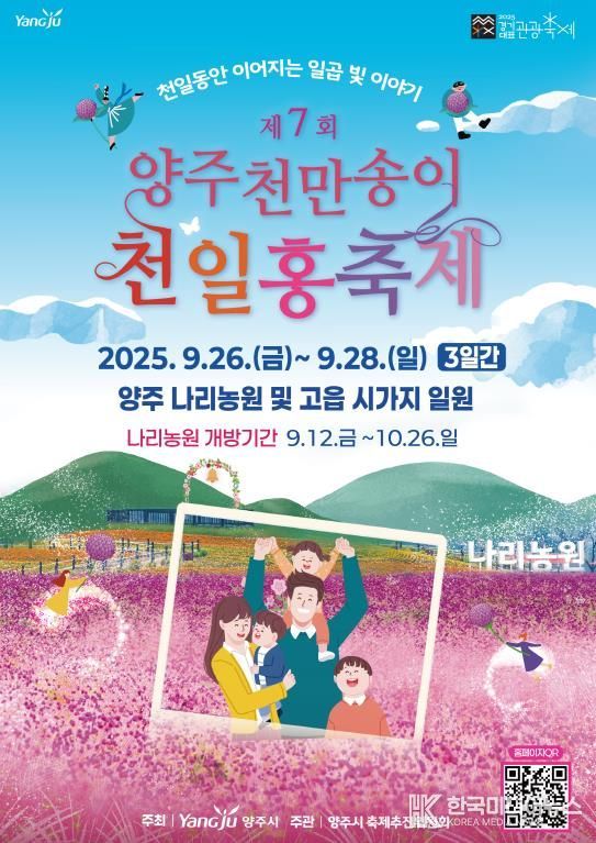 [ 한국미디어뉴스 김서안 기자 ] 양주시가 오는 9월 26일부터 28일까지 양주 나리농원에서 '제7회 양주 천만송이 천일홍 축제'를 개최한다고 밝혔다.