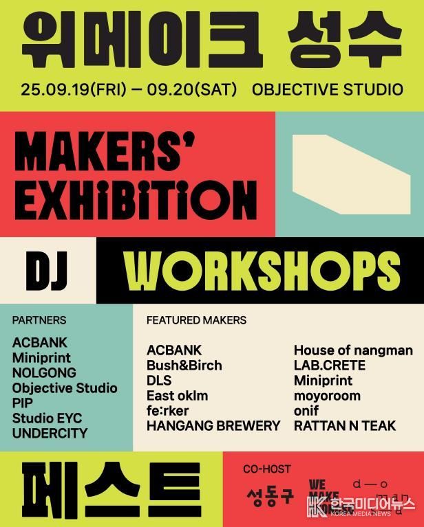 [ 한국미디어뉴스 이보영 기자 ] 서울 성동구는 성수동 제작 문화를 기반으로 한 로컬 메이커 축제 ‘WE MAKE FEST 2025(위메이크페스트)’를 오는 9월 19일부터 20일까지 북성수 오브젝티브 스튜디오에서 개최한다고 밝혔다.