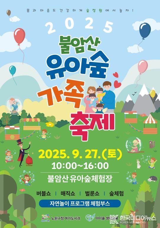 [ 한국미디어뉴스 이보영 기자 ] 서울 노원구는 오는 9월 27일 불암산 유아숲체험원 일대에서 ‘제12회 유아숲 가족축제’를 개최한다고 밝혔다.