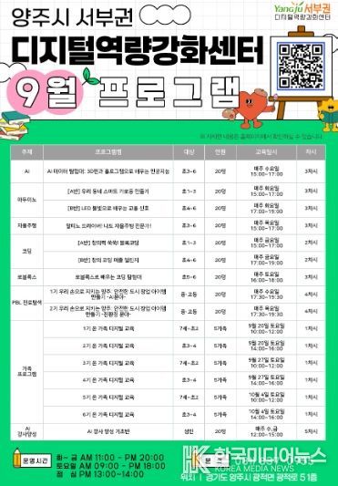 [ 한국미디어뉴스 김서안 기자 ] 양주시가 최근 서부권 지역 주민들의 디지털 교육 거점 역할을 수행할 “서부권 디지털역량강화센터”가 본격 운영에 들어갔다고 밝혔다.