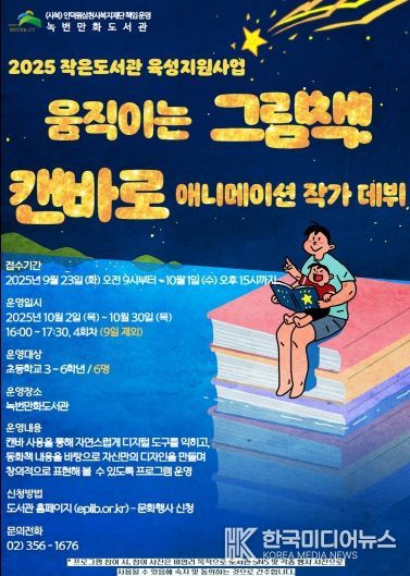 [ 한국미디어뉴스 이보영 기자 ] 서울 은평구는 녹번만화도서관이 2025 작은도서관 육성지원사업의 일환으로 초등학생을 위한 창의 융합 프로그램 ‘움직이는 그림책! 캔바로 애니메이션 작가 데뷔’를 운영한다고 밝혔다.