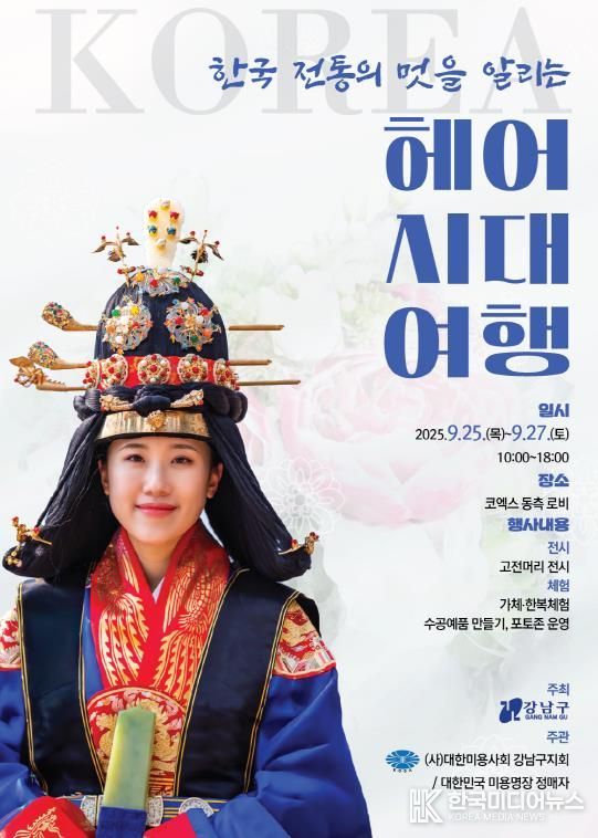 [ 한국미디어뉴스 이보영 기자 ] 꿈이 모이는 도시, 미래를 그리는 강남구가 오는 9월 25일부터 27일까지 코엑스 동측 로비에서 ‘한국 전통의 멋을 알리는 헤어시대 여행’을 개최한다.