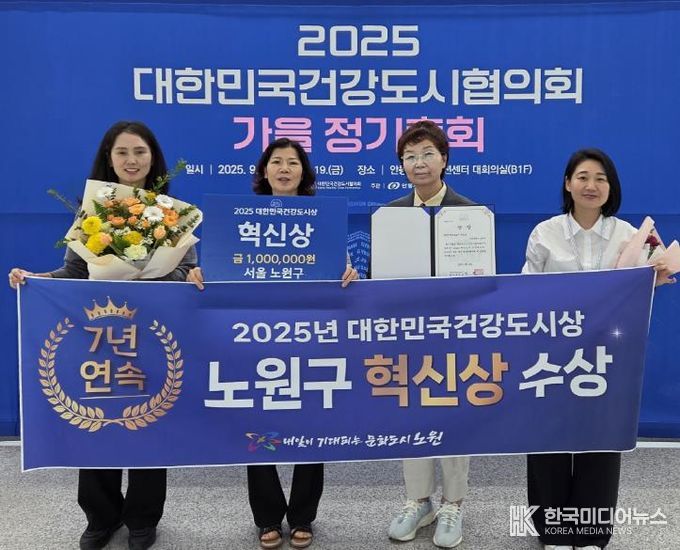 [ 한국미디어뉴스 이보영 기자 ] 서울 노원구가 '2025년 대한민국 건강도시상 일반부문 혁신상'을 수상하며 7년 연속 건강도시로 인정받았다고 밝혔다.