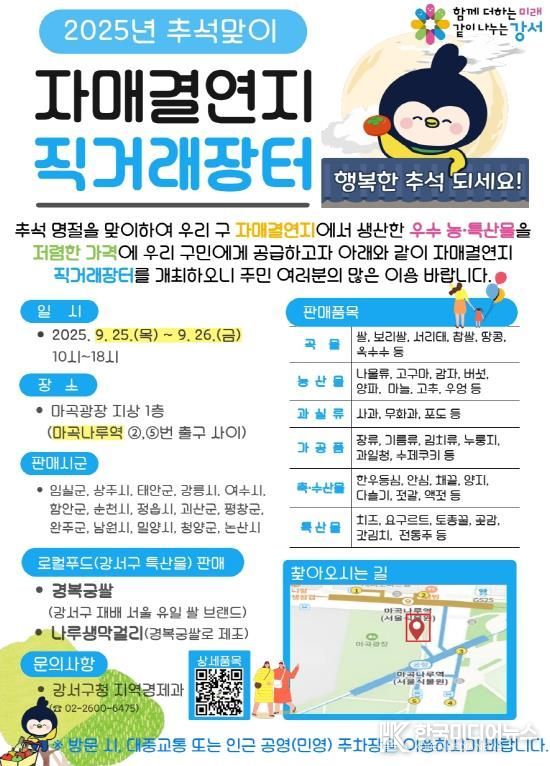 [ 한국미디어뉴스 이보영 기자 ] 서울 강서구가 오는 25일과 26일 이틀간 ‘추석맞이 자매결연지 직거래장터’를 운영한다고 밝혔다.