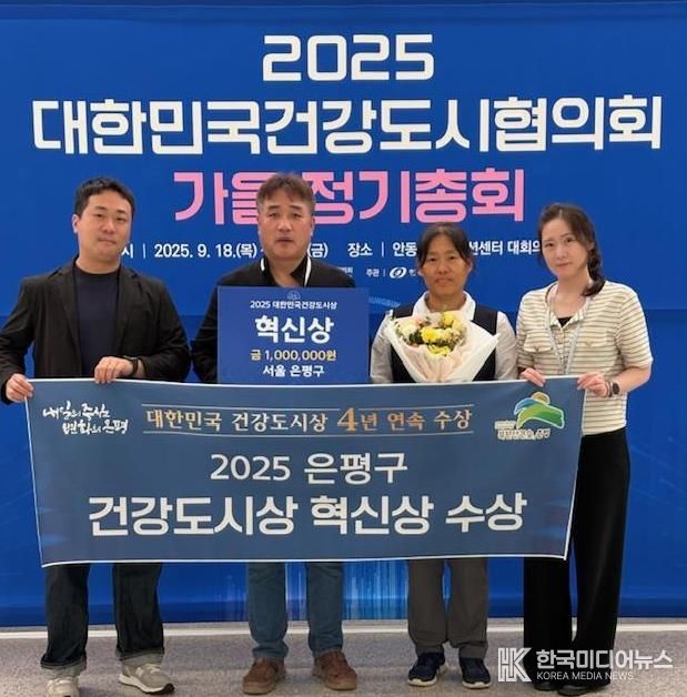 [ 한국미디어뉴스 이보영 기자 ] 서울 은평구는 지난 18일 안동에서 열린 ‘2025 제10회 대한민국 건강도시상 공모전’에서 혁신상을 받았다고 밝혔다.