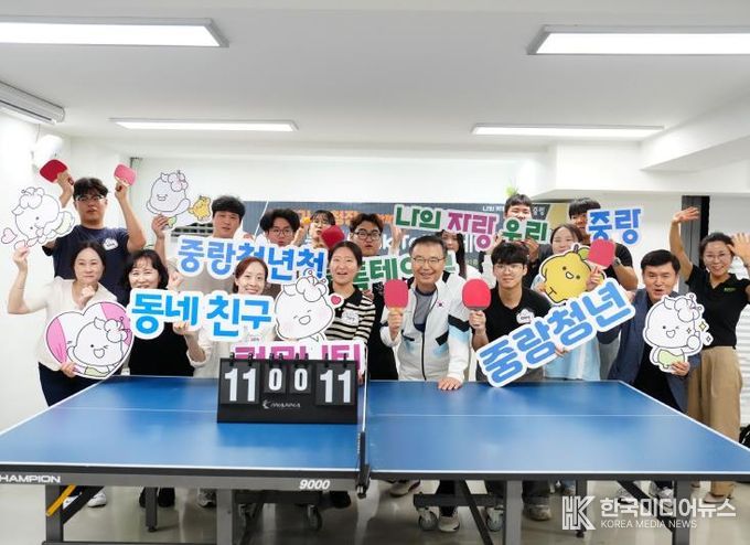 이날 행사에는 동네친구 커뮤니티 참여자 12명 등 총 16명의 청년이 함께했다. 류경기 중랑구청장도 자리를 함께해 청년들과 직접 탁구 경기에 나서며 현장의 열기를 더했다.