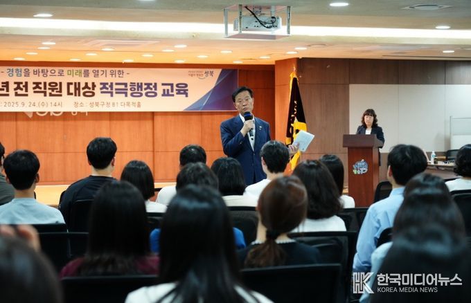 [ 한국미디어뉴스 이보영 기자 ] 서울 성북구가 24일 전 직원을 대상으로 ‘적극행정 교육’을 실시했다. 구는 급변하는 행정 환경에 선제적으로 대응할 수 있는 실무 능력을 함양하고, 주민 체감형 행정 구현을 위한 적극행정 문화를 확산하기 위해 이번 교육을 준비했다.