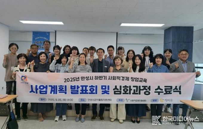 [ 한국미디어뉴스 이보영 기자 ] 안성시는 9월 25일 안성시공익활동지원센터 교육장에서2025년 하반기 사회적경제 창업교육 심화과정 수료식을 성황리에 개최했다.