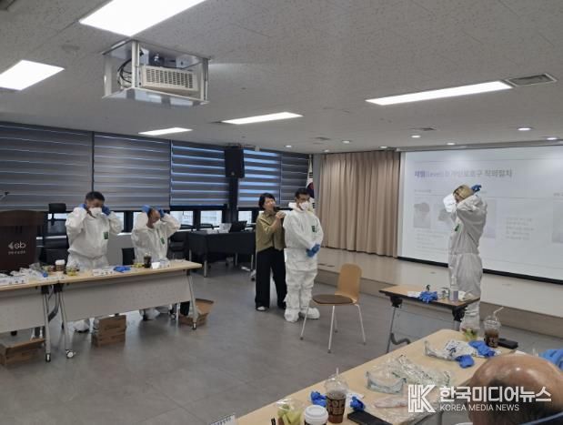 이번 모의훈련은 최근 수도권 가금농장에서 H5N1형 AI 항원이 처음 확인된 상황을 반영해 진행됐다. 구는 실제 발생할 수 있는 상황을 가정해 부서별 역할 숙지, 비상연락망 현행화를 통한 행정체계 정비, 개인보호복(Level D) 착·탈의 훈련 등을 실시하며 초기 대응 절차부터 유관기관 간 협조 체계까지 전반적인 대응 프로세스를 점검했다.