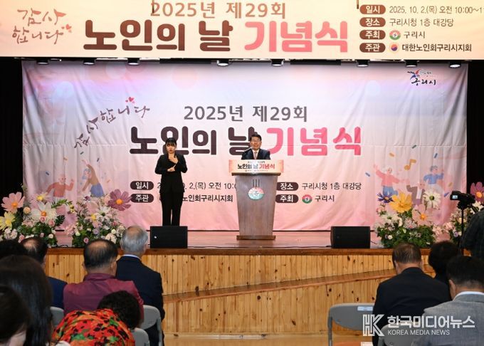 [ 한국미디어뉴스 김서안 기자 ] 구리시는 노인의 날을 맞아 10월 2일 오전 10시 구리시청 1층 대강당에서 제29회 노인의 날 기념식을 열고 지역 어르신들과 뜻깊은 시간을 가졌다.