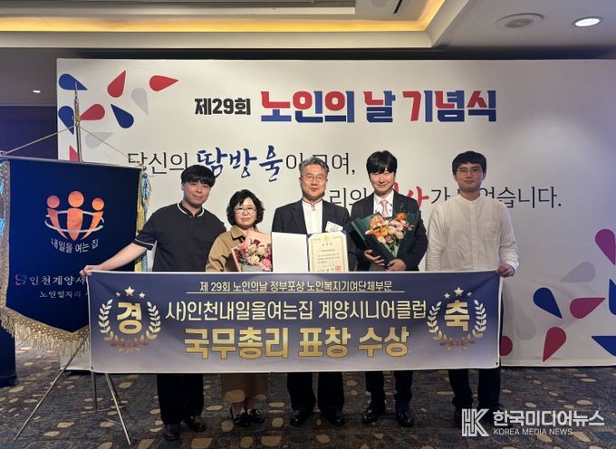 [ 한국미디어뉴스 황영수 기자 ] 인천 계양구는 지난 2일 2025년 ‘노인의 날’을 맞아 노인복지 발전에 기여한 공로를 인정받아 인천계양시니어클럽(관장 손재오)이 국무총리 표창을 수상했다고 밝혔다.