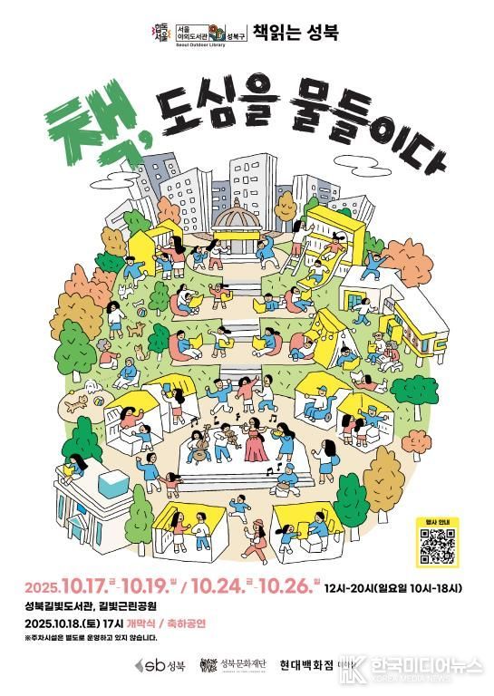 [ 한국미디어뉴스 이보영 기자 ] 서울 성북구와 성북문화재단이 오는 10월 17일부터 26일까지 매주 금·토·일요일, 성북길빛도서관과 길빛근린공원 일대에서 『서울야외도서관 책 읽는 성북 – 책, 도심을 물들이다』를 운영한다.