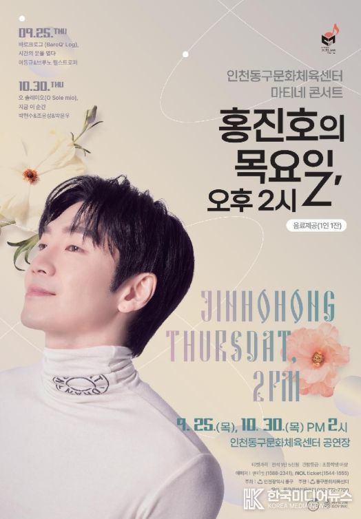 [ 한국미디어뉴스 이원희 기자 ] 인천 동구문화체육센터는 마티네 콘서트 '목요일, 오후 2시' 두 번째 무대를 오는 30일 오후 2시 동구문화체육센터 공연장에서 개최한다고 밝혔다.