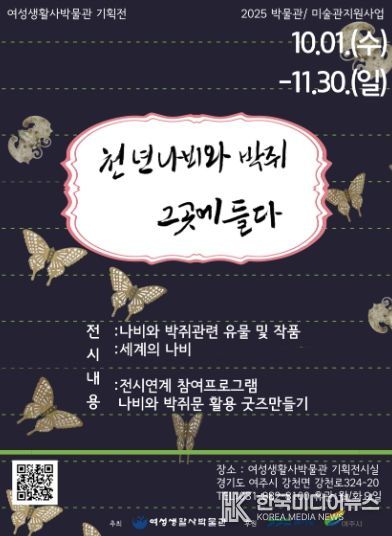 [ 한국미디어뉴스 이보영 기자 ] 여주시에서 진행하는 2025년 박물관·미술관 지원사업의 일환으로 여성생활사박물관의 ‘천년 나비와 박쥐 그곳에 들다’ 전시가 10월 1일부터 11월 30일까지 개최된다.