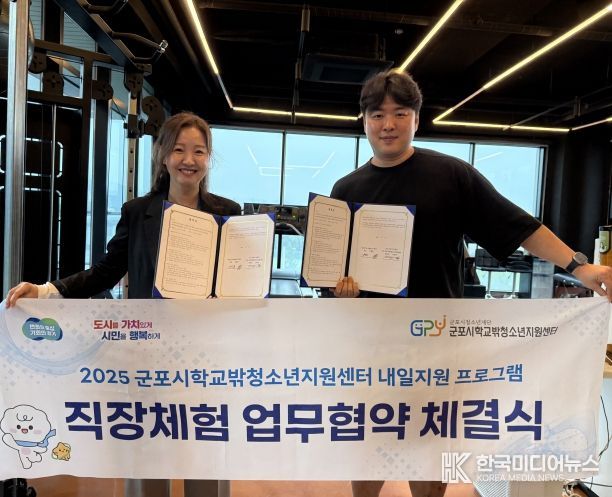 [ 한국미디어뉴스 이보영 기자 ] 군포시청소년재단(대표이사 김덕희), 군포시학교밖청소년지원센터(센터장 강연미)는 조직 운영 및 마케팅에 관심 있는 학교 밖 청소년의 진로 탐색과 현장 경험 확대를 위해 내셔널국가대표PT센터(대표 김택용)와 직장체험 업무협약을 체결했다고 밝혔다.