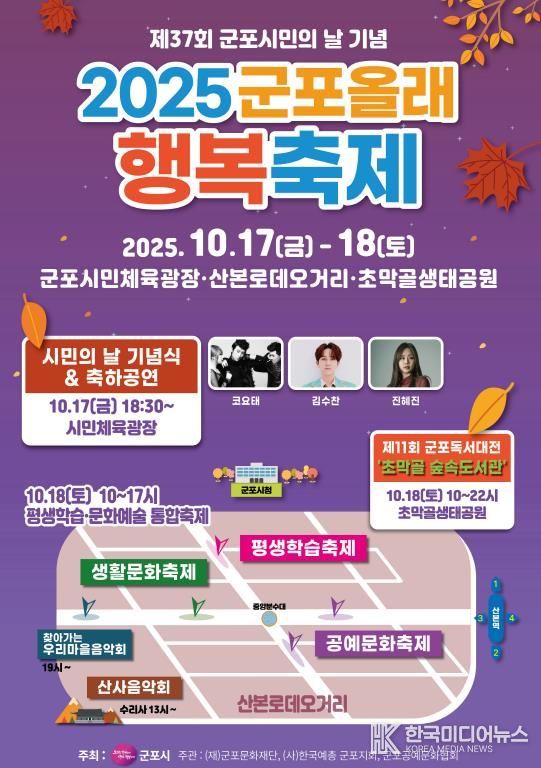 [ 한국미디어뉴스 이보영 기자 ] 군포문화재단 군포시평생학습마을은 오는 10월 18일, 산본로데오거리 일대에서 '제12회 군포시 평생학습축제'를 개최한다고 밝혔다. 이번 축제는 관내 평생학습 기관 및 단체·동아리 등이 직접 참여해 시민들과 함께 배우고 즐기는 축제의 장으로 꾸며진다.