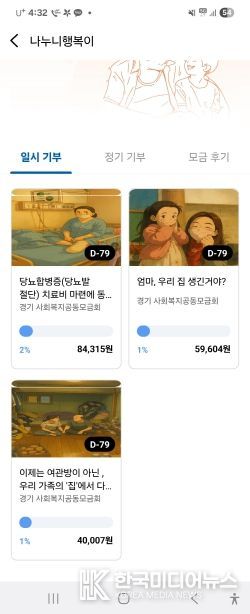 ‘나누니 행복이’는 경기지역화폐 앱 내 ‘기부하기’ 메뉴에서 소개된 이웃들의 사연 중 기부를 원하는 대상을 선택해 ‘기부하기’를 클릭하면 모금 기간 종료 후 대상자에게 기부금이 전달되는 방식으로 운영된다.