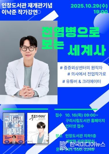 특히 작가초청 강연에는 『중증외상센터 : 골든아워』의 원작자인 이낙준 작가가 참여한다. 행사는 10월 29일(화) 저녁 7시, 새롭게 단장한 지하 1층 북카페형 개방 공간에서 진행된다.