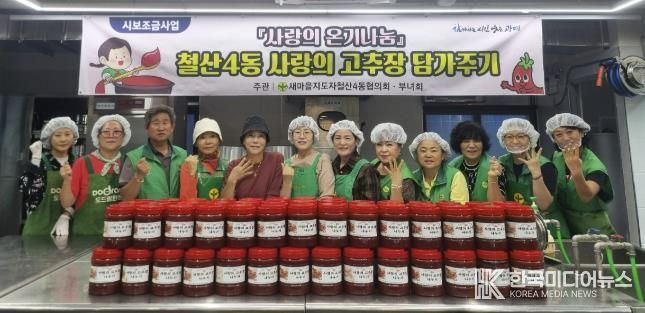한편, 새마을지도자 철산4동협의회와 부녀회는 매년 ▲밑반찬 나눔 ▲해충방역 소독 ▲고추장 나눔 ▲김장 나눔 등 다양한 봉사활동으로 이웃사랑을 실천하고 있다.