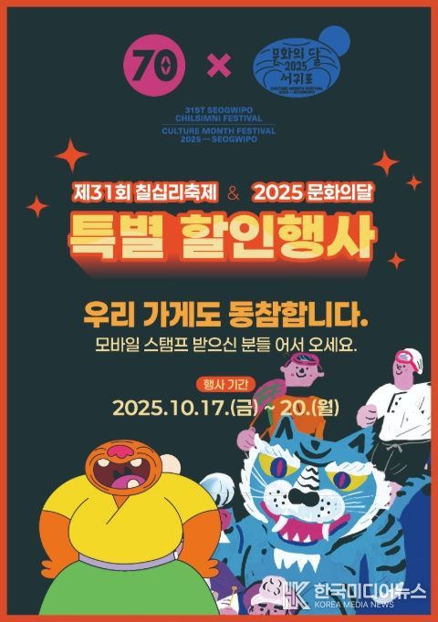 [ 한국미디어뉴스 이원영 기자 ] 서귀포시는 ‘제31회 서귀포칠십리축제 & 2025 문화의달 행사’를 맞아 지역 상권 활성화를 위한 다양한 연계 이벤트를 운영한다고 밝혔다.