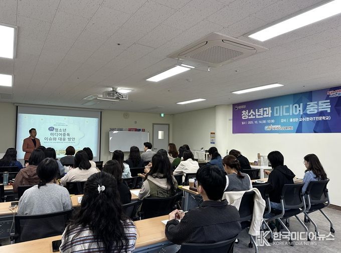 이날 강의는 최근 AI 기술의 급속한 발전으로 인해 나타나는 다양한 사회적 문제를 예방하기 위해서‘청소년과 미디어 중독’을 주제로 한국IT전문학교 홍성관 교수가 진행했다.