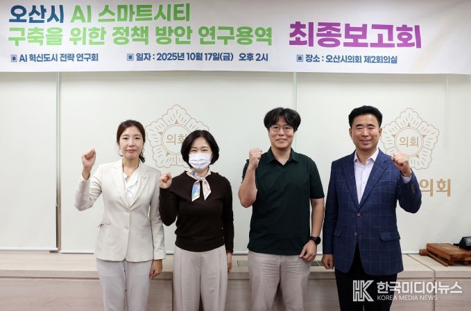 [ 한국미디어뉴스 이보영 기자 ] 오산시의회 의원연구단체인 ‘AI혁신도시 전략 연구회’는 17일 의회 제2회의실에서 오산형 AI 스마트시티 구축을 위한 정책 방안 연구 최종보고회를 개최했다.
