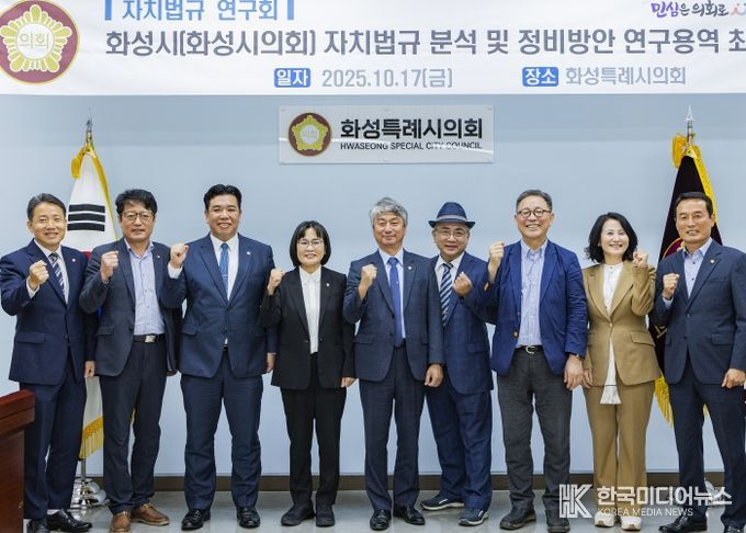 [ 한국미디어뉴스 이보영 기자 ] 화성특례시의회 의원연구단체인 ‘자치법규 연구회’가 17일 상임위원회 회의실에서 연구용역 최종보고회를 가졌다.